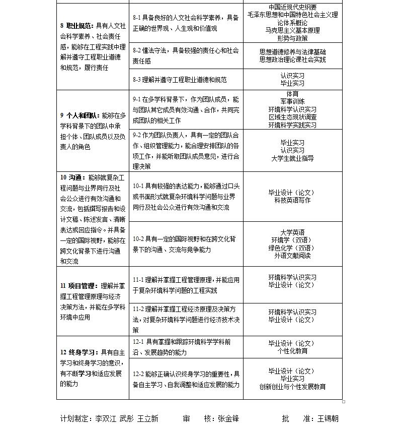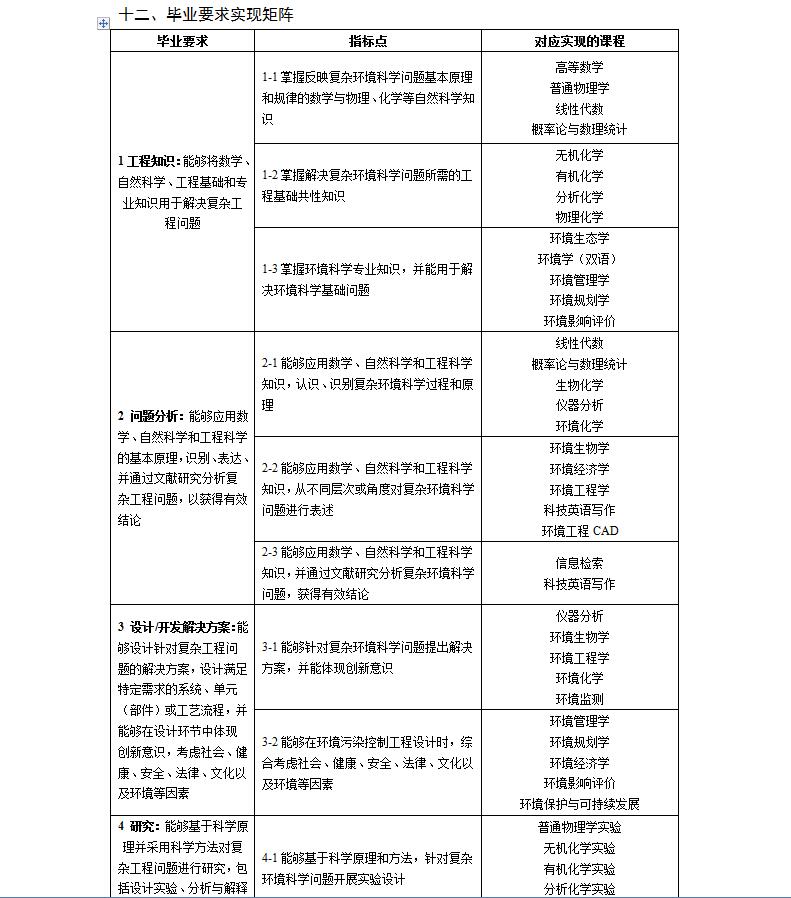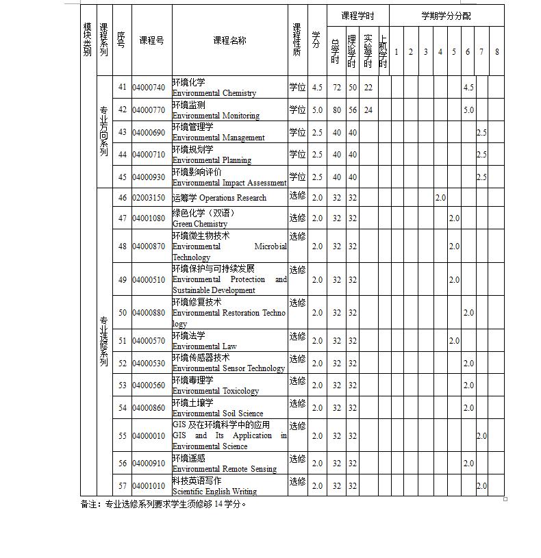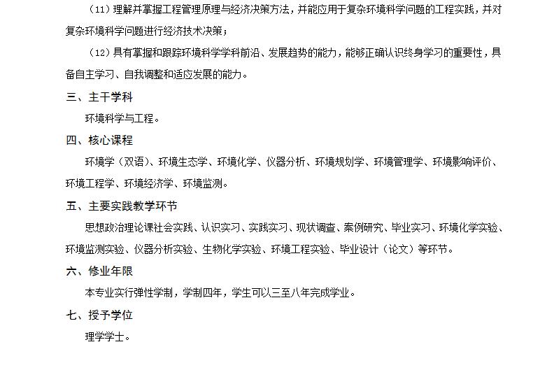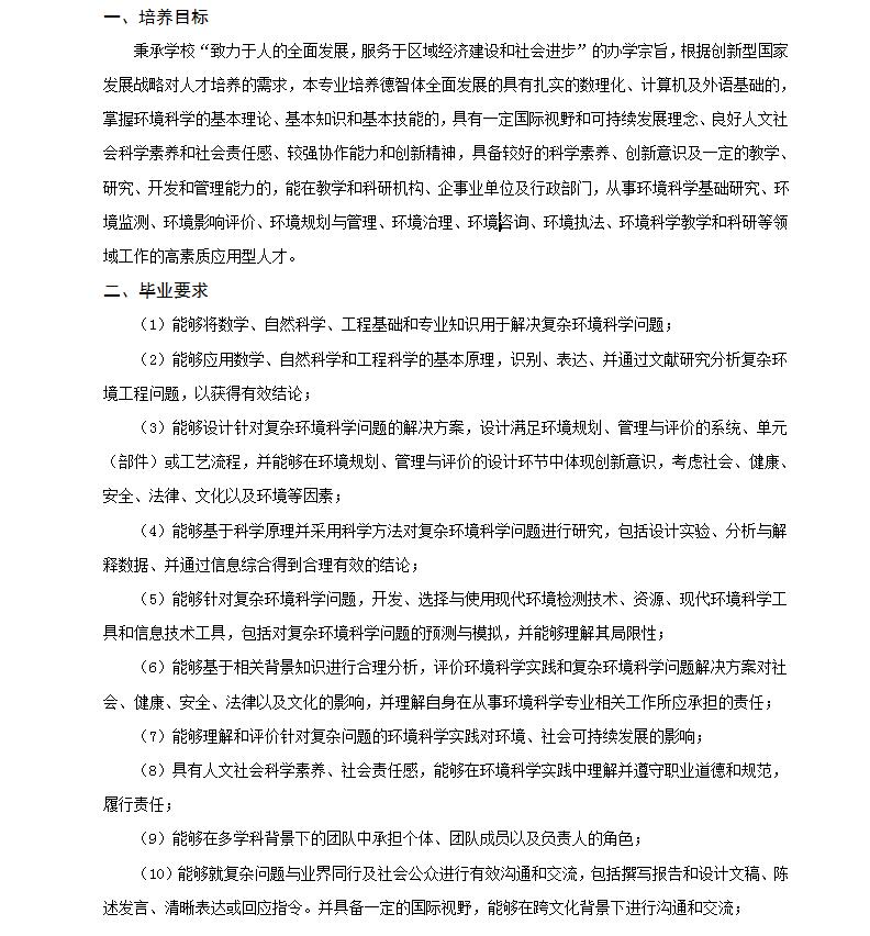 环境科学专业培养方案(理学,环境类,专业代码082503)